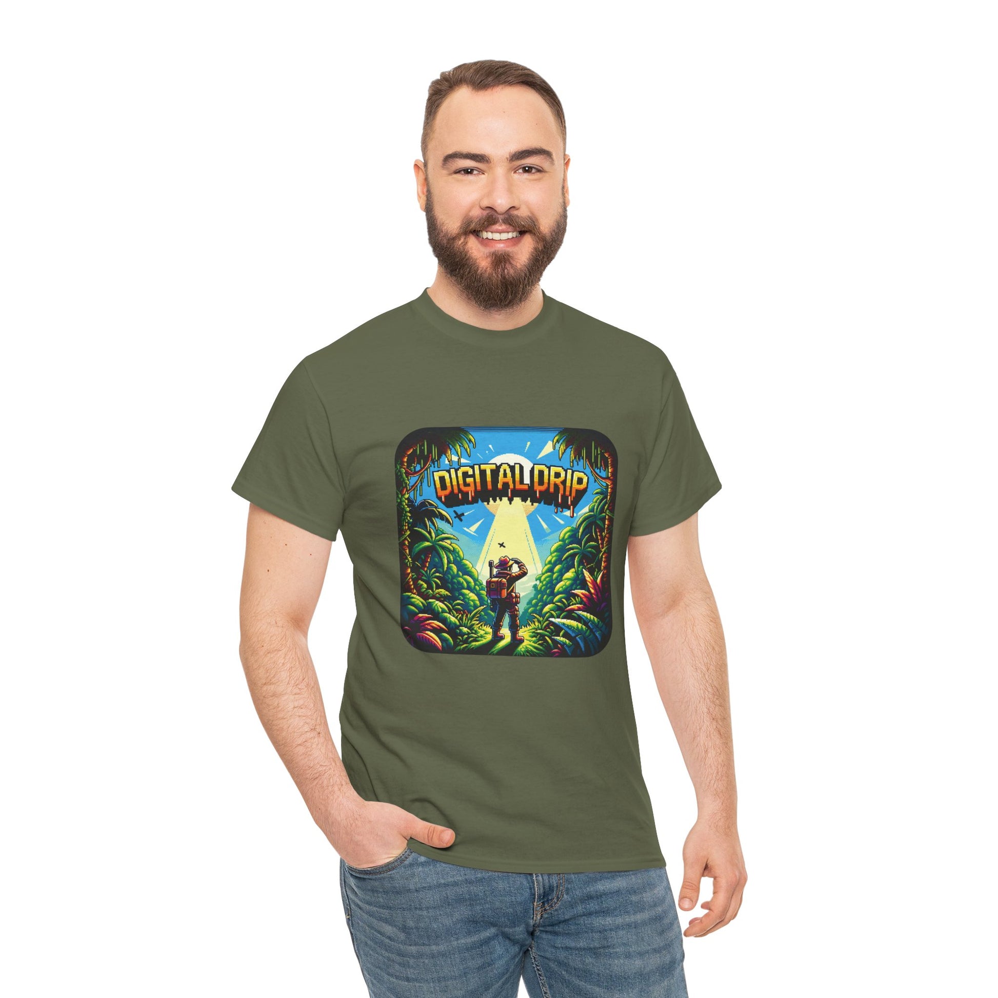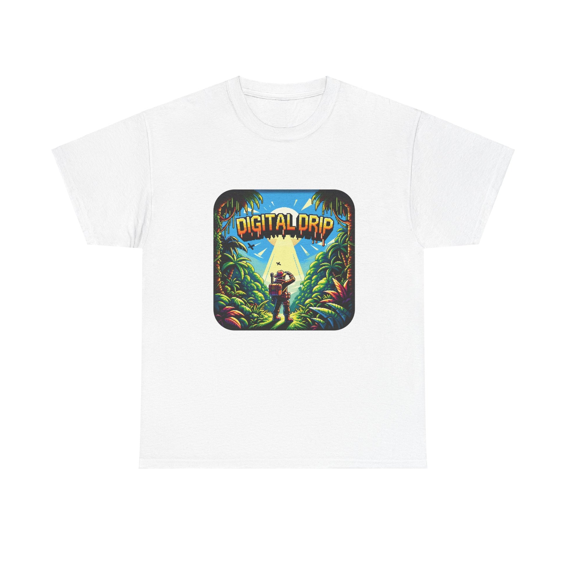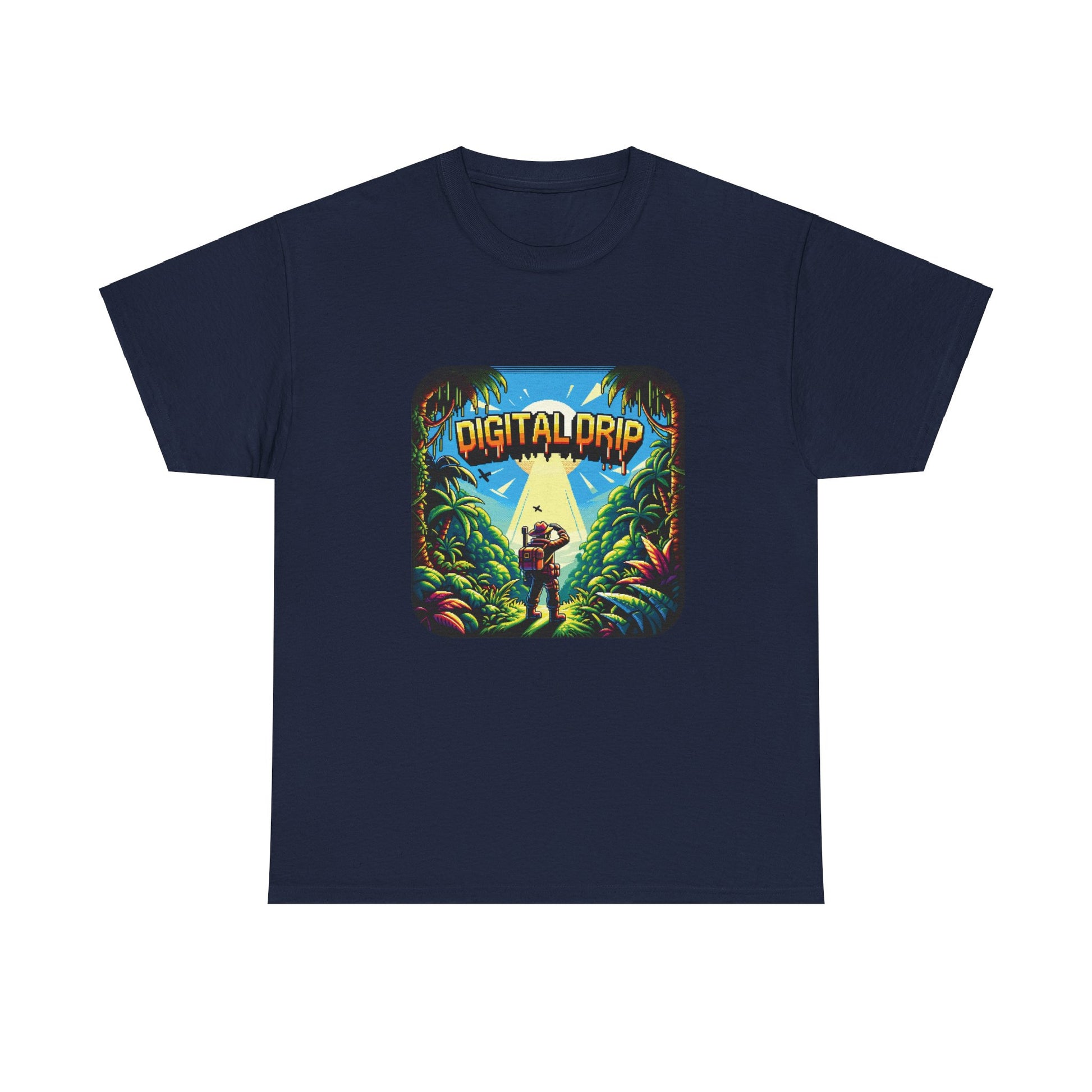 Denne t-skjorten er for den digitale utforskeren i oss alle, og blander tiltrekningen av uberørt natur med den digitale tidsalderens kant. Det er en oppfordring til villmarken med et pikselert pass, perfekt for både urbane jungler og ekte villmarksturer.